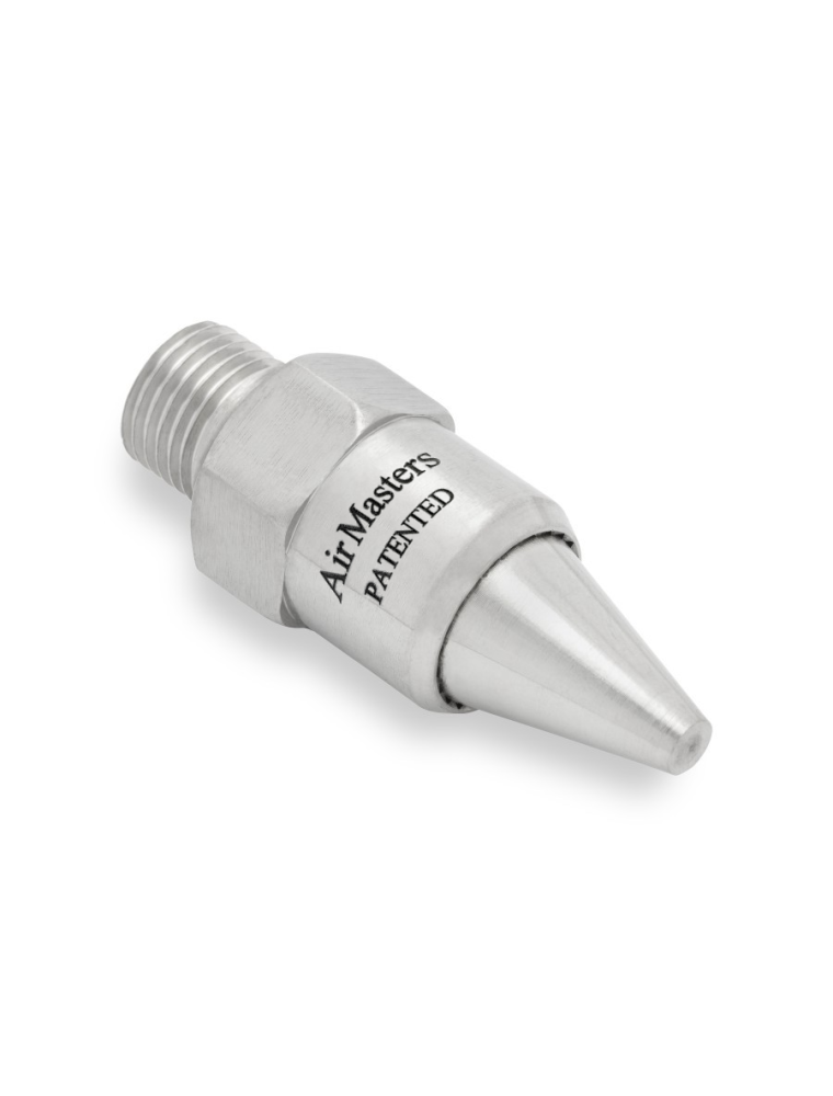 Airmasters range of air nozzles blow-off is the widest choice in the world!! Ideal where the blow-off requires technical sizing and where high noise level and consumption cause serious problems. Blowing, cleaning and sorting are only some examples of applications where our air nozzles are used. These air nozzles substitute open pipes of 2 mm to 25 mm allowing dramatic energy savings and a return on investment within a few weeks! Send us details of your current open pipe or in the case of a new application, discuss it with our technicians in order to receive a calculation of viable air savings Airmasters compressed air nozzles guarantee noise level reductions of over 50% compared to an open tube or a home manufactured device.