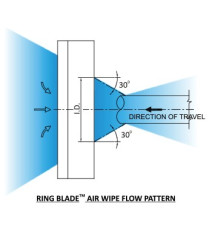 Air Wipe or Circular Air Knife blow off, clean, cool and dry cables, pipes, extrusions, hoses, wires and ropes. Air Wipe or Circular Air Knife is easy to mount and maintain and reduces both compressed air consumption and noise levels. Air Wipe or Circular Air Knife produces a “laminar” flow of air along its 360º angle using the Coanda effect which “entrains” a large volume of air from the surrounding area along with the small amount of compressed air from the Air Wipe or Circular Air Knife to produce an output flow up to 30 times. System payback on compressed air savings can be as soon as a few weeks in some applications.