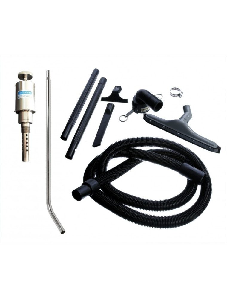 The 316L Stainless Steel Drum Angel Model 35011S includes the Drum Angel unit, crevice tool, heavy duty skimmer tool, floor tool, two (2) straight plastic wands, metal wand for sure with heavy duty skimmer tool, 10’ of plastic hose with cuffs and drum adaptor with plastic tube.